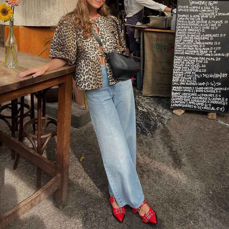 Women's lightweight short-sleeved leopard print top with intricate details NOVAE