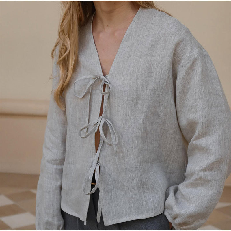 Women's linen blouse with elegant bows NOVAE