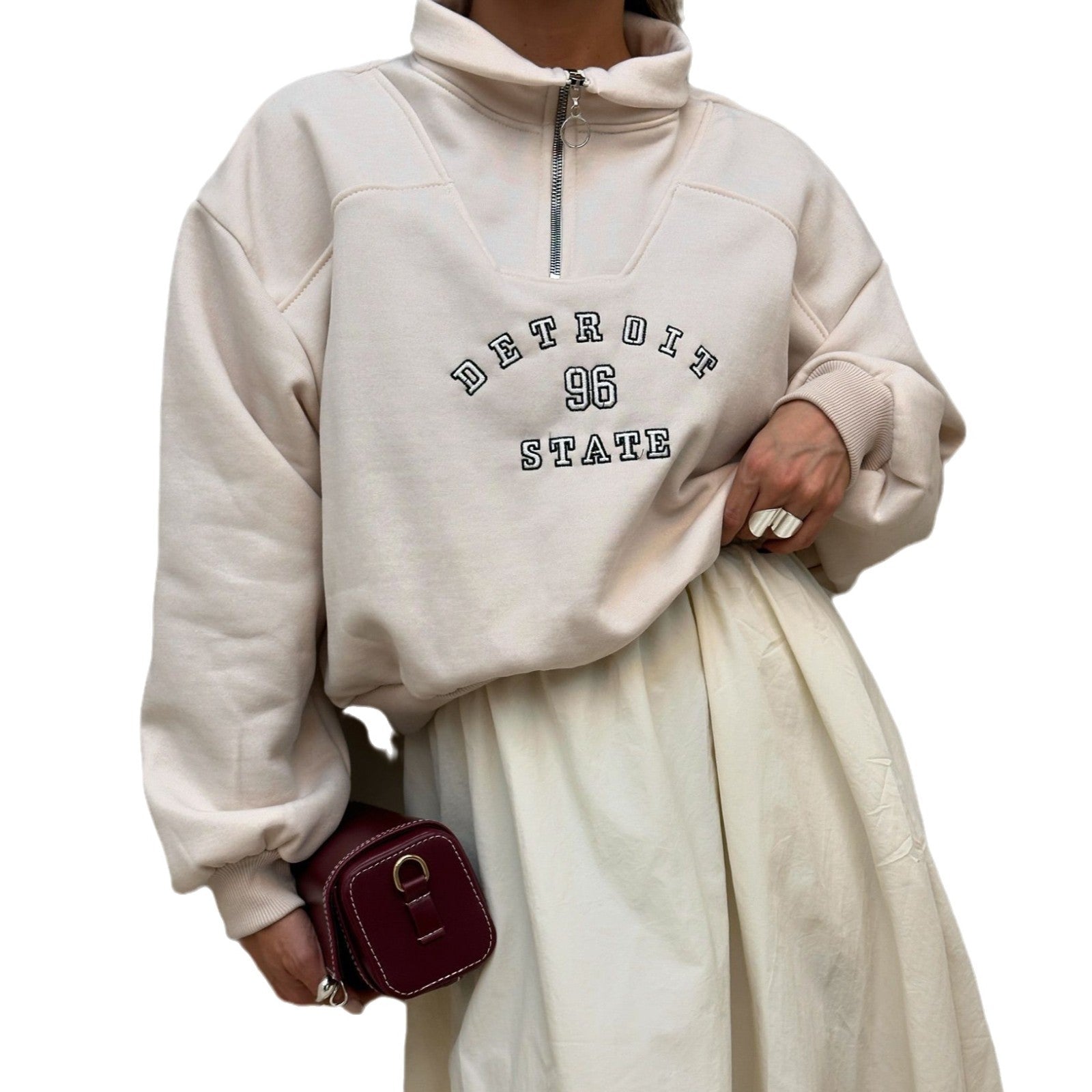 Amara D October 6, 2025Verified buyerEnthusiastic!My first order here, and certainly not my last. The sizes are true to size, and shipping was faster than expected. Highly recommended!Women's sweatshirt with stylish stand-up collar and vintage print NOVAE Was that helpful? 0 0