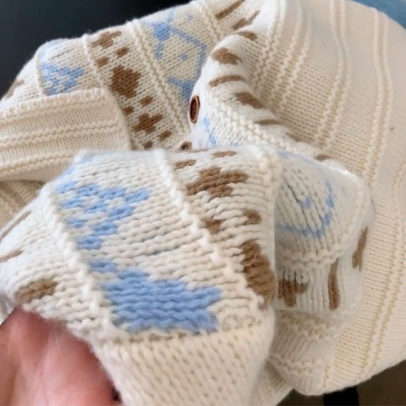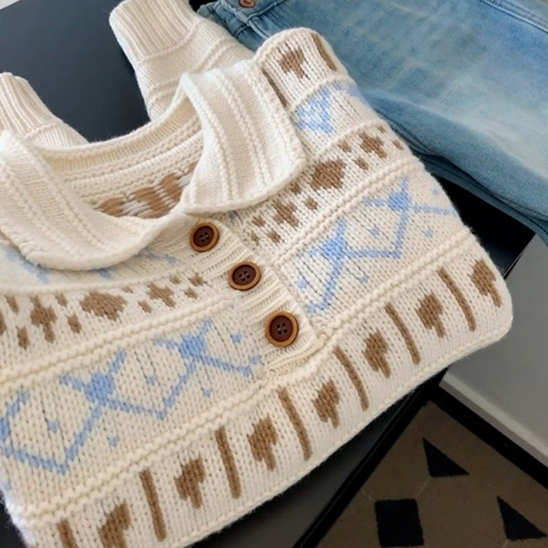 Discover the unique women's chunky knit sweater from NOVAE, distinguished by its charming graphic design and romantic collar. This sweater combines comfort and style and is perfect for the cooler months.
