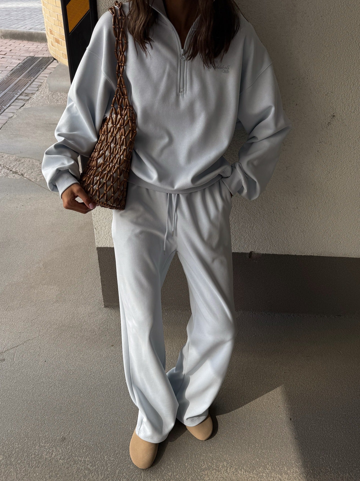 Discover our stylish and comfortable women's sports set with a high collar and elasticated waistband from NOVAE. This set combines functionality and fashionable chic, perfect for relaxed days or sporting activities.