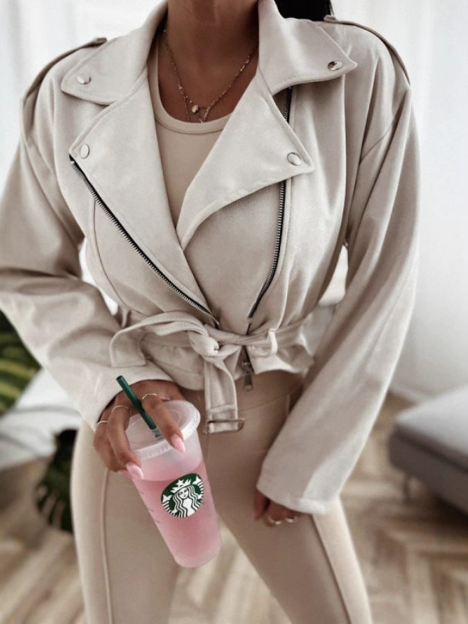Women's Casual Biker-Style Transitional Jacket with Waist Belt NOVAE