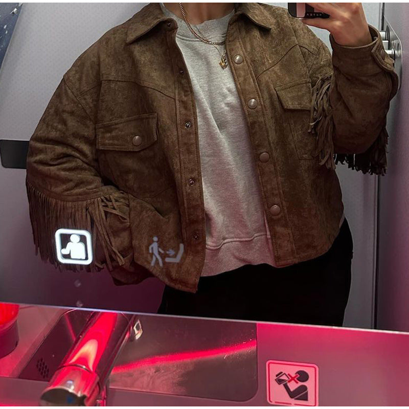 Women's casual suede jacket with fringe...