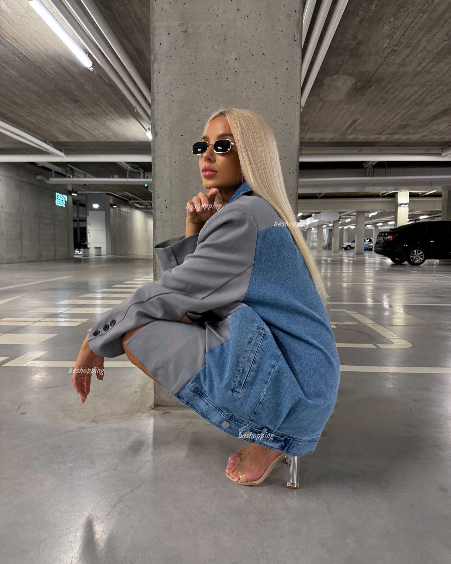Women's fashionable blazer jacket with innovative denim design and elegant details NOVAE