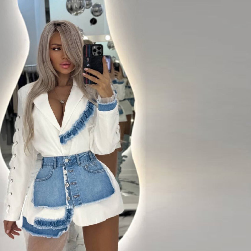 Discover the fashionable women's blazer jacket with ruffle details from NOVAE, a high-quality fashion statement that is both stylish and comfortable. This blazer jacket combines elegant elements with a modern twist and is perfect for various occasions.