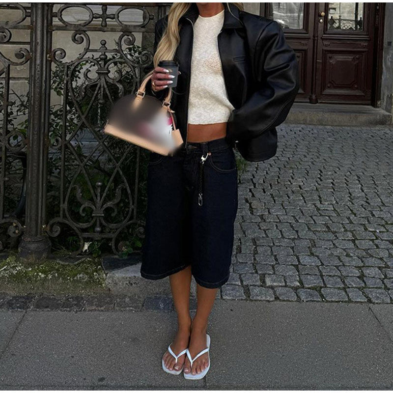 Discover the fashionable women's faux leather jacket with an elasticated cut and practical pockets from NOVAE – the perfect combination of style and functionality. This jacket is an essential garment for fashion-conscious women who seek both comfort and elegance.