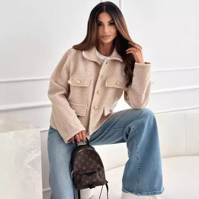 This teddy jacket is an essential garment for every fashion-conscious woman who values comfort and style. Get your new favorite piece now and add a touch of flair to your wardrobe!