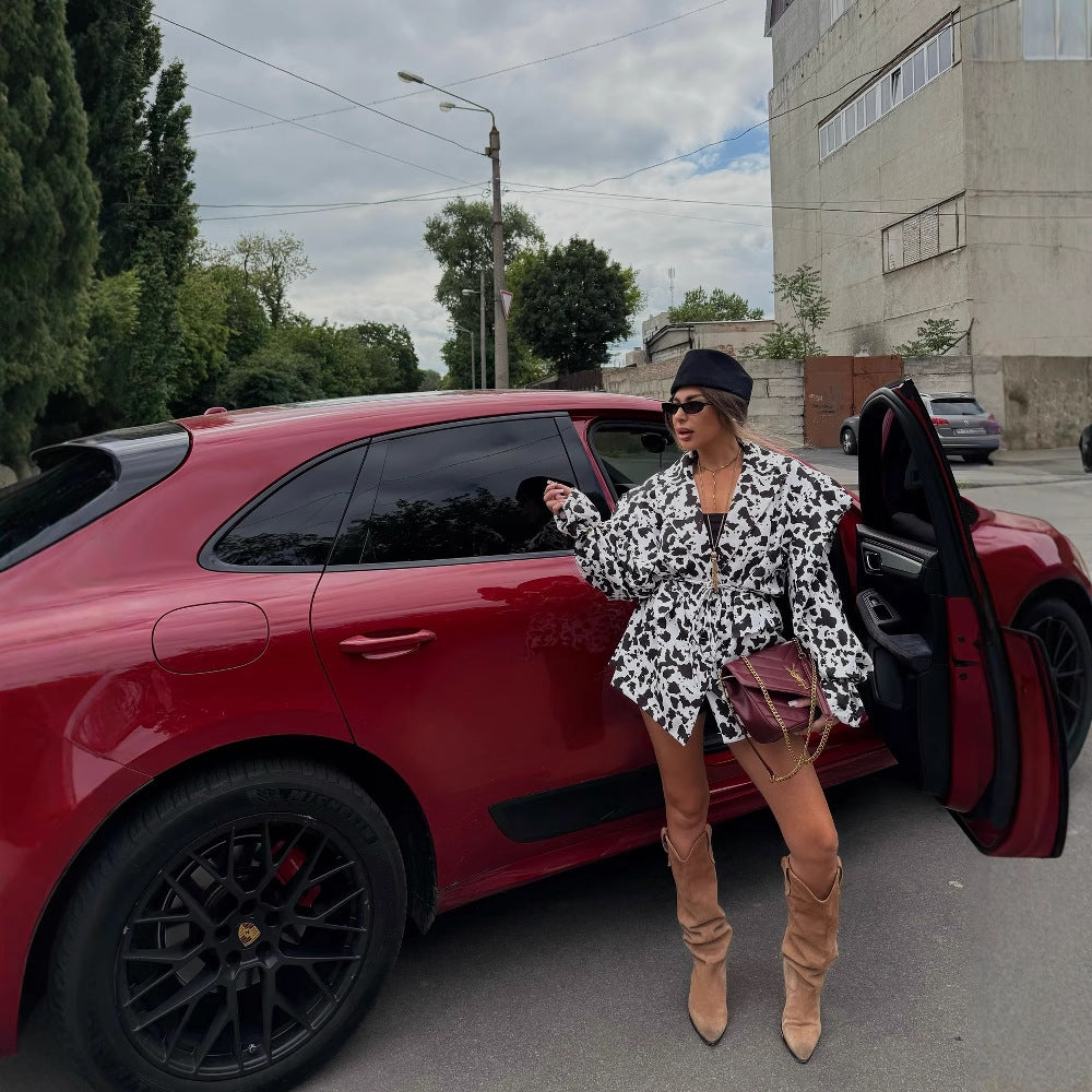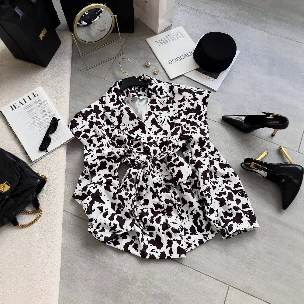 Discover our stylish women's blouse that combines elegance and comfort. Made from high-quality material, this blouse features a unique spotted pattern that adds a modern touch. The chic cut and decorative tie at the waist create a flattering silhouette. Ideal for various occasions, whether at the office or during leisure time.