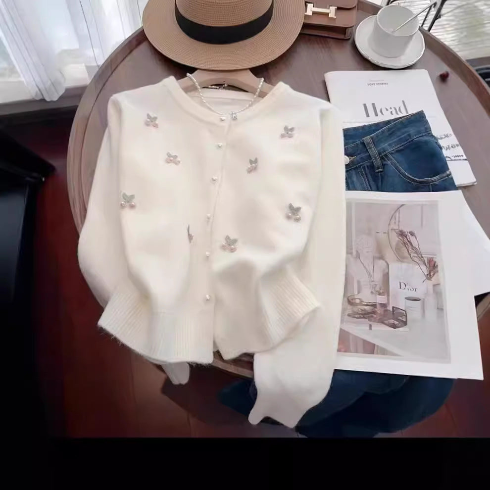 Choose the NOVAE women's elegant cardigan with floral appliqués for a stylish look that not only looks good but also feels good!