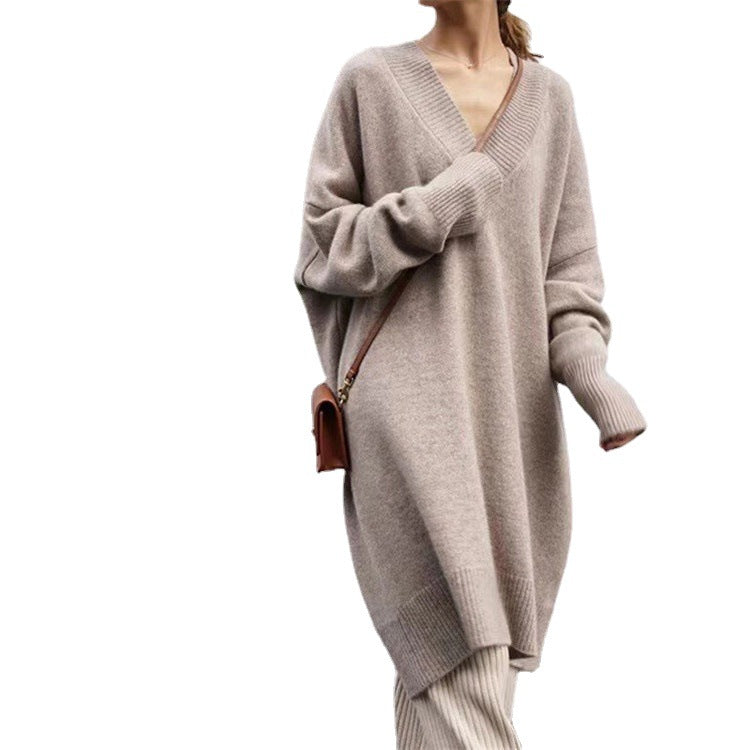 Women's cozy knit dress with V-neck and long sleeves NOVAE