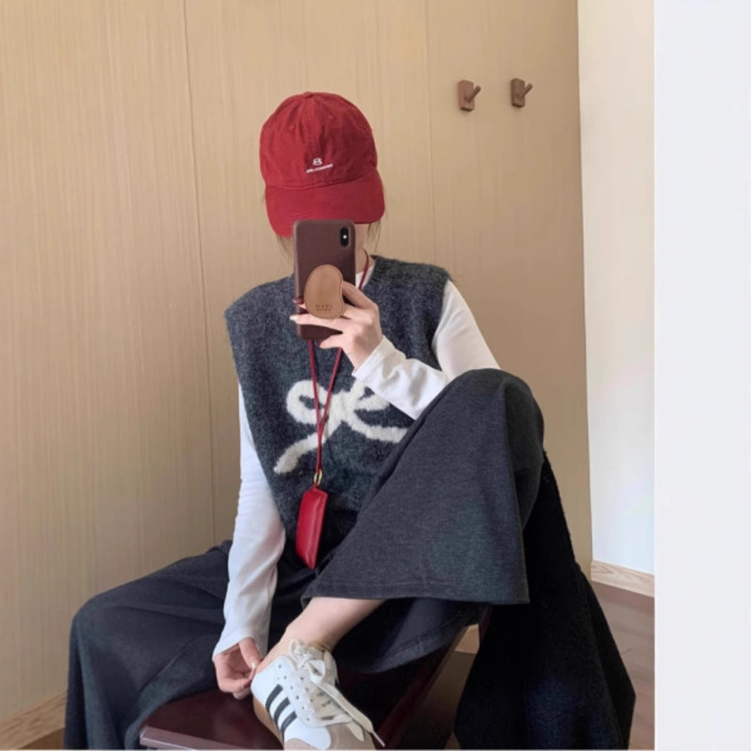 Women's Cozy Knit Vest with Playful Bow Motif NOVAE