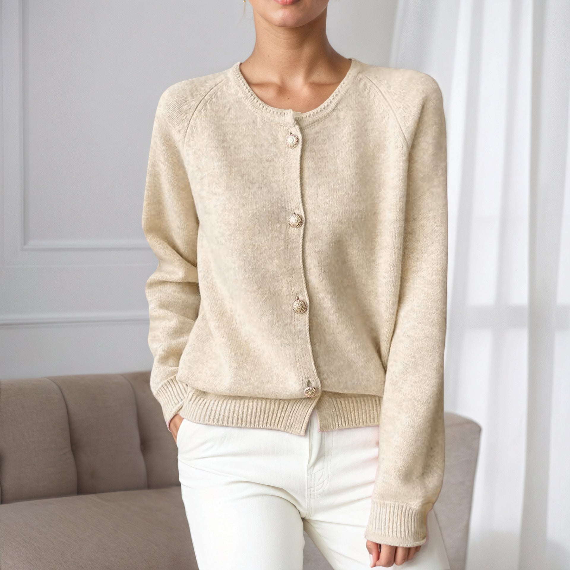 Discover our women's cozy knit cardigan with button details, which is both stylish and versatile. This cardigan is perfect for any season and offers you the ideal mix of comfort and elegance.