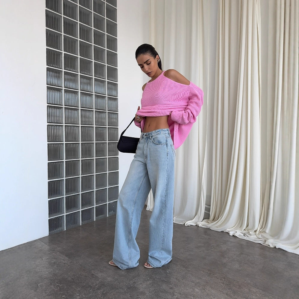 • Open shoulder design: This trendy detail gives the sweater a seductive touch and ensures an airy fit.