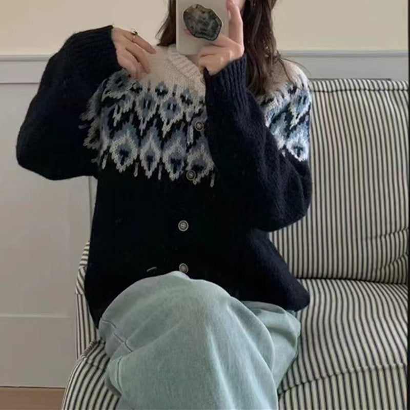 Discover ultimate comfort with our women's knit cardigan, which combines stylish design and functionality. This cardigan features a traditional pattern that adds a trendy touch and is perfect for the cooler months.