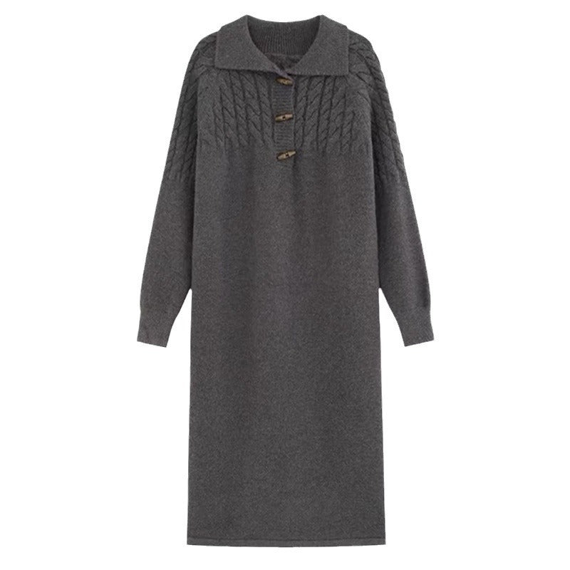 Discover our elegant women's knit dress with collar and button details from NOVAE, combining stylish comfort and timeless elegance. This dress is perfect for any season and offers an ideal combination of fashionable design and comfortable wearability.