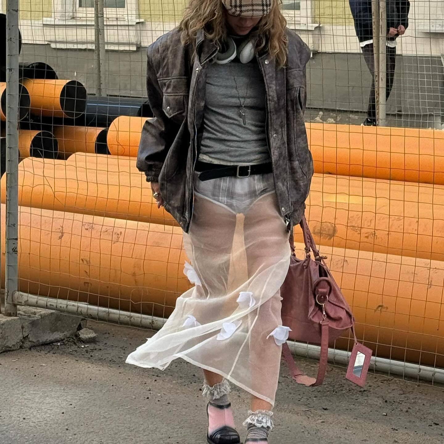 Add a unique and stylish touch to your outfit with this elegant transparent skirt from NOVAE!