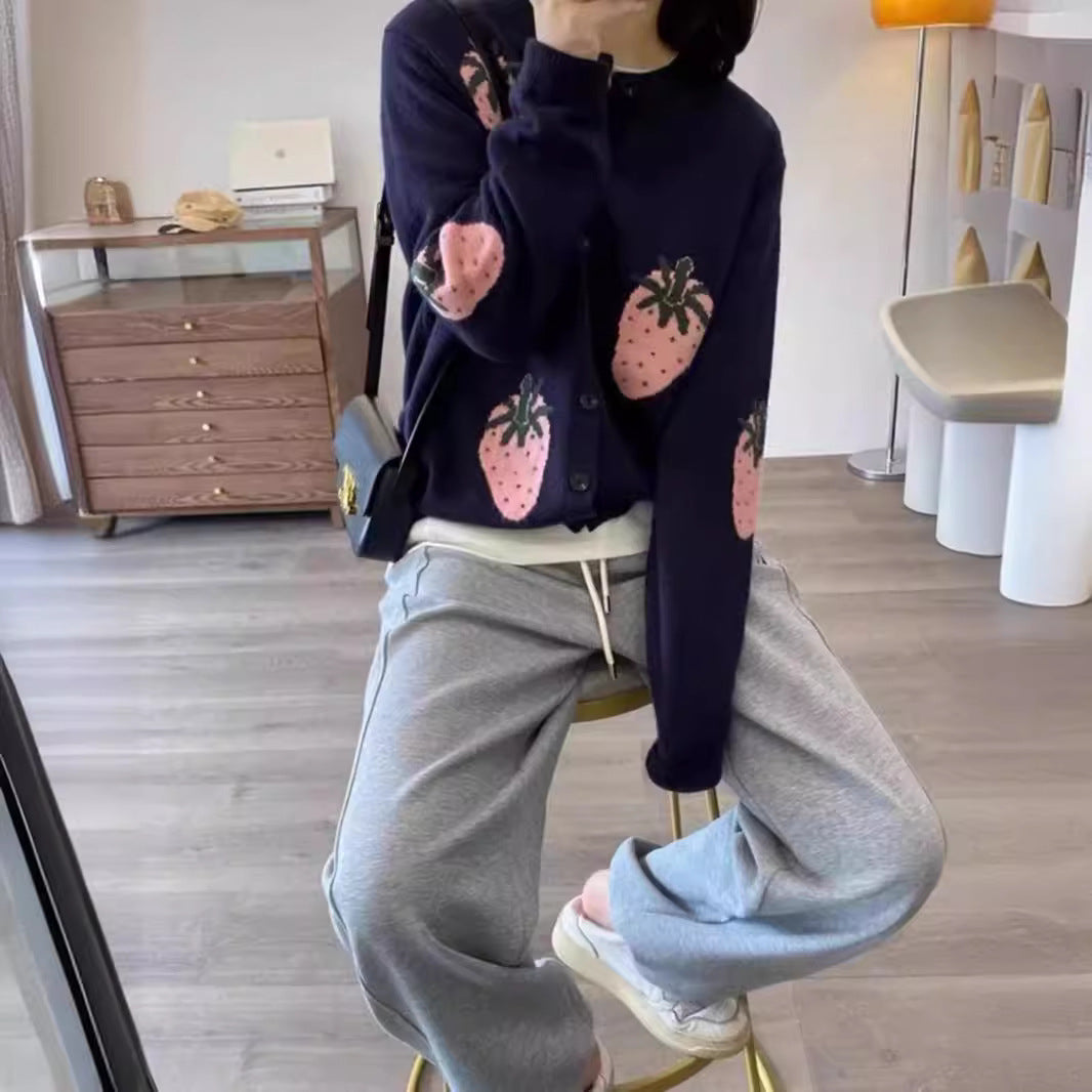 Discover our women's playfully patterned cardigan with button detail from NOVAE – the perfect combination of style and comfort for any occasion. This cardigan features a unique strawberry pattern, giving it a cheerful and modern look.
