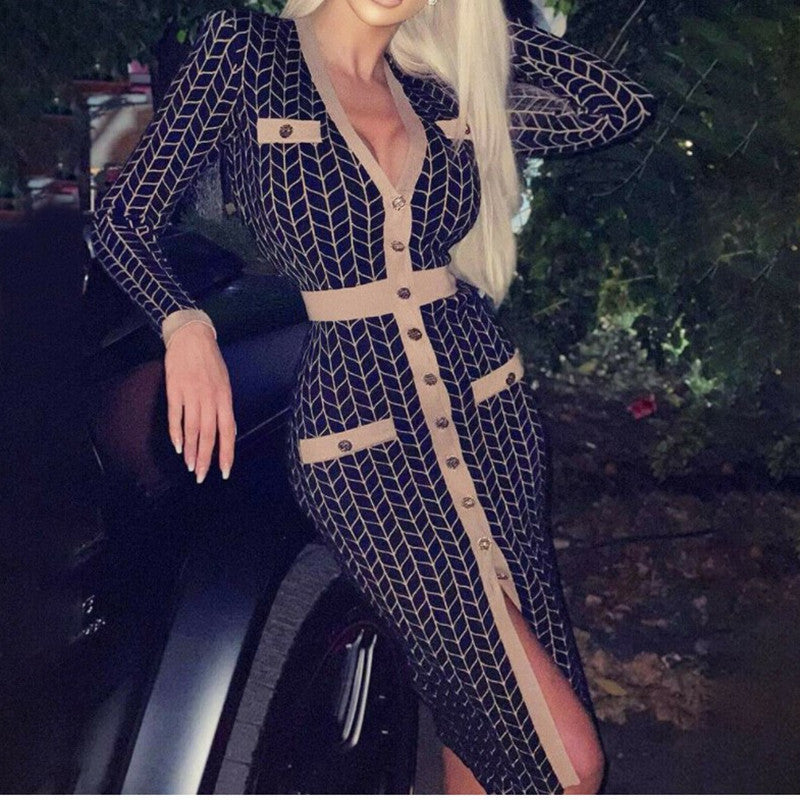 Discover our stylish women's knit dress, which perfectly combines elegance and comfort. The dress features a modern V-neck and full button detailing, creating an appealing look.