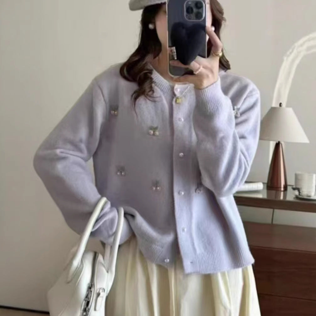 Women's Elegant Cardigan with Floral Appliqués...
