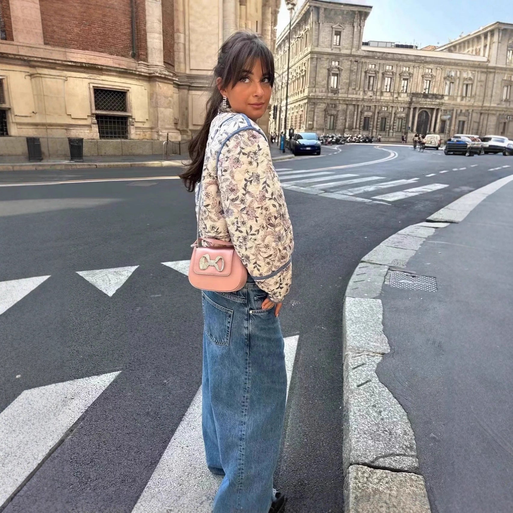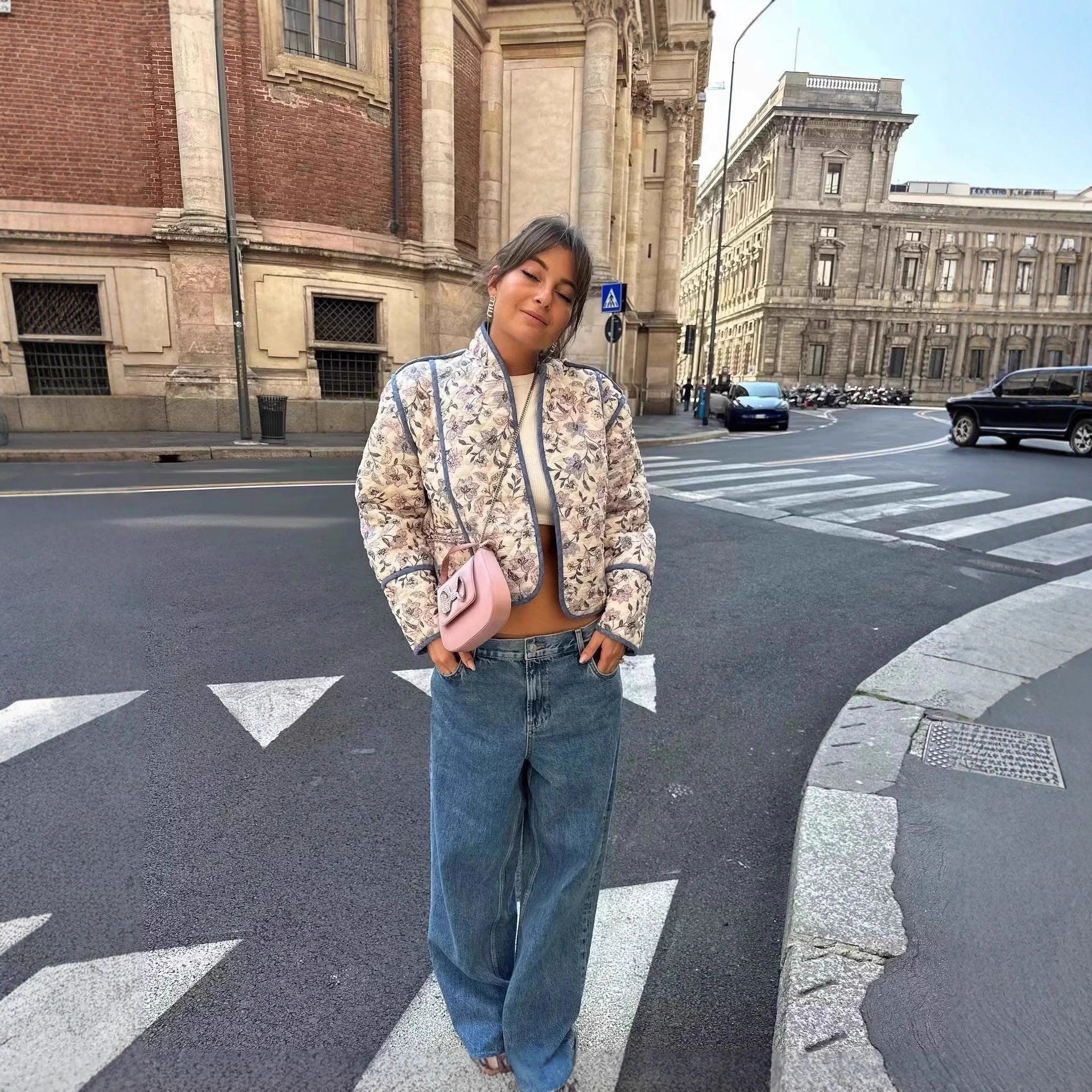 Women's patterned quilted jacket with elegant cut and decorative details NOVAE