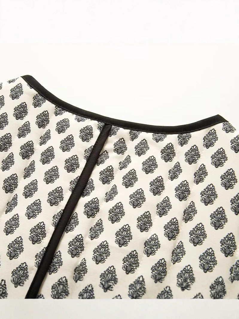 Discover the stylish and versatile women's quilted jacket from NOVAE, perfect for any season. With its unique print and elegant details, this jacket will become an essential part of your wardrobe.