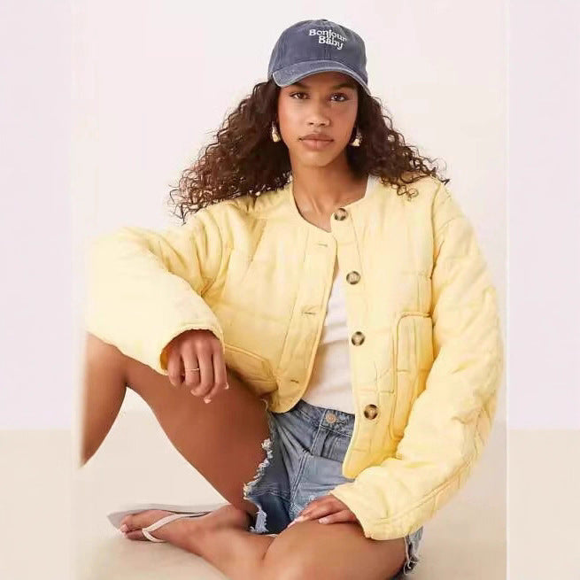 Discover our elegant women's quilted transitional jacket, which perfectly combines comfort and style. With its modern design and practical snap fasteners, this jacket is ideal for the transitional seasons.