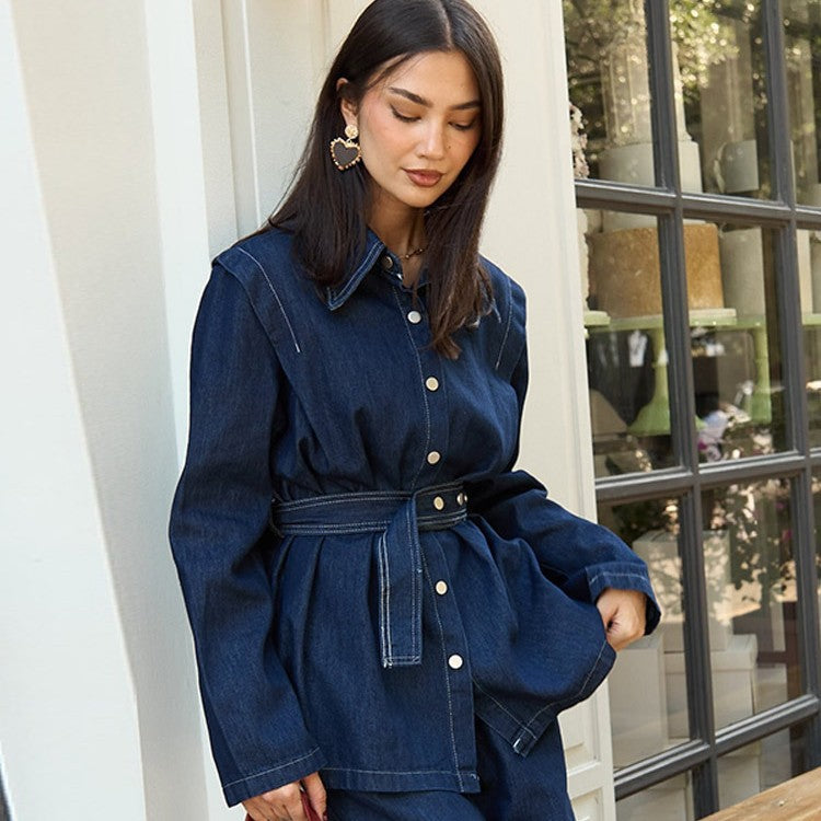 Ideal for a chic city stroll or as a stylish outfit for special occasions. Add a touch of modern chic to your wardrobe with this trendy denim set.