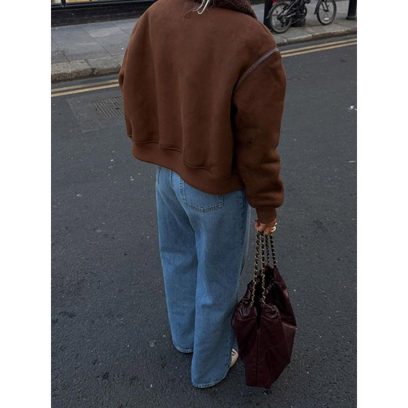 This shearling jacket is an essential garment for fashionable women who want a warm and stylish look. Get yours now and make a statement of elegance and comfort!