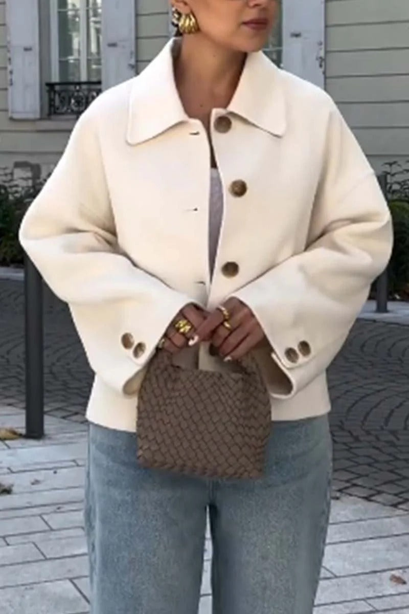 Discover the new women's fashionable oversized wool jacket from NOVAE, ideal for a stylish, casual look. This jacket combines a comfortable fit with elegant design elements, perfect for the transitional seasons.