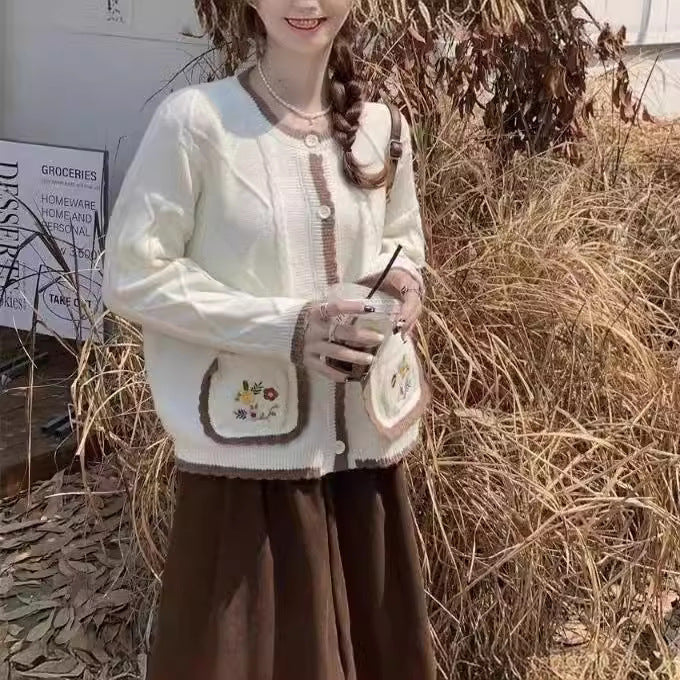 - Unique design: The cardigan features a sophisticated knit structure and charming floral embroidery on the pockets, adding a special touch.