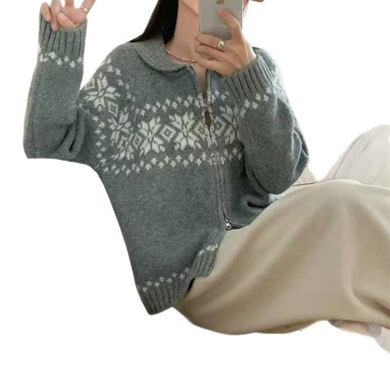 Discover the elegant and cozy qualities of our women's cardigan. This jacket features a modern Nordic pattern that is both stylish and versatile. The high collar provides extra comfort and warmth, ideal for the coldest days of the year.