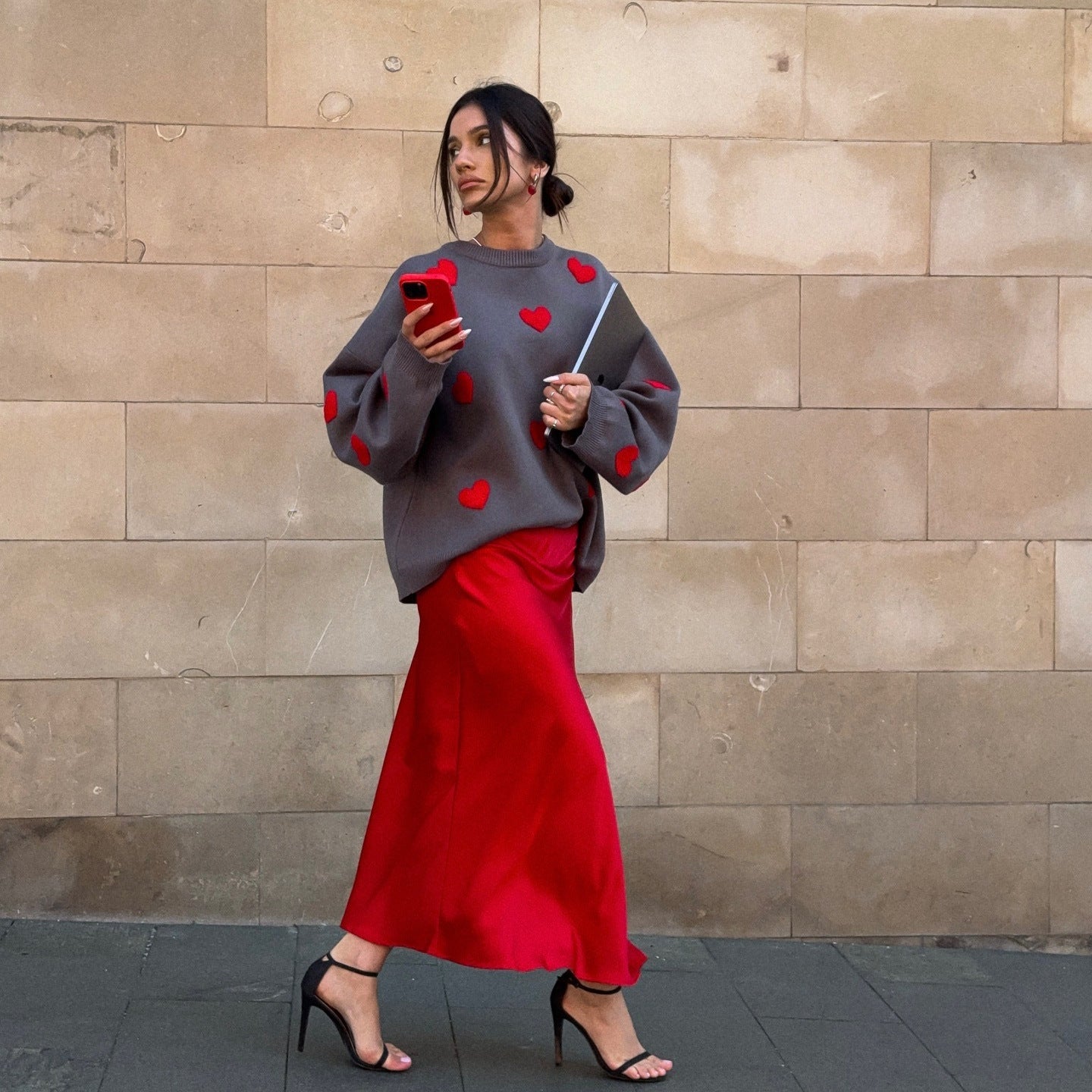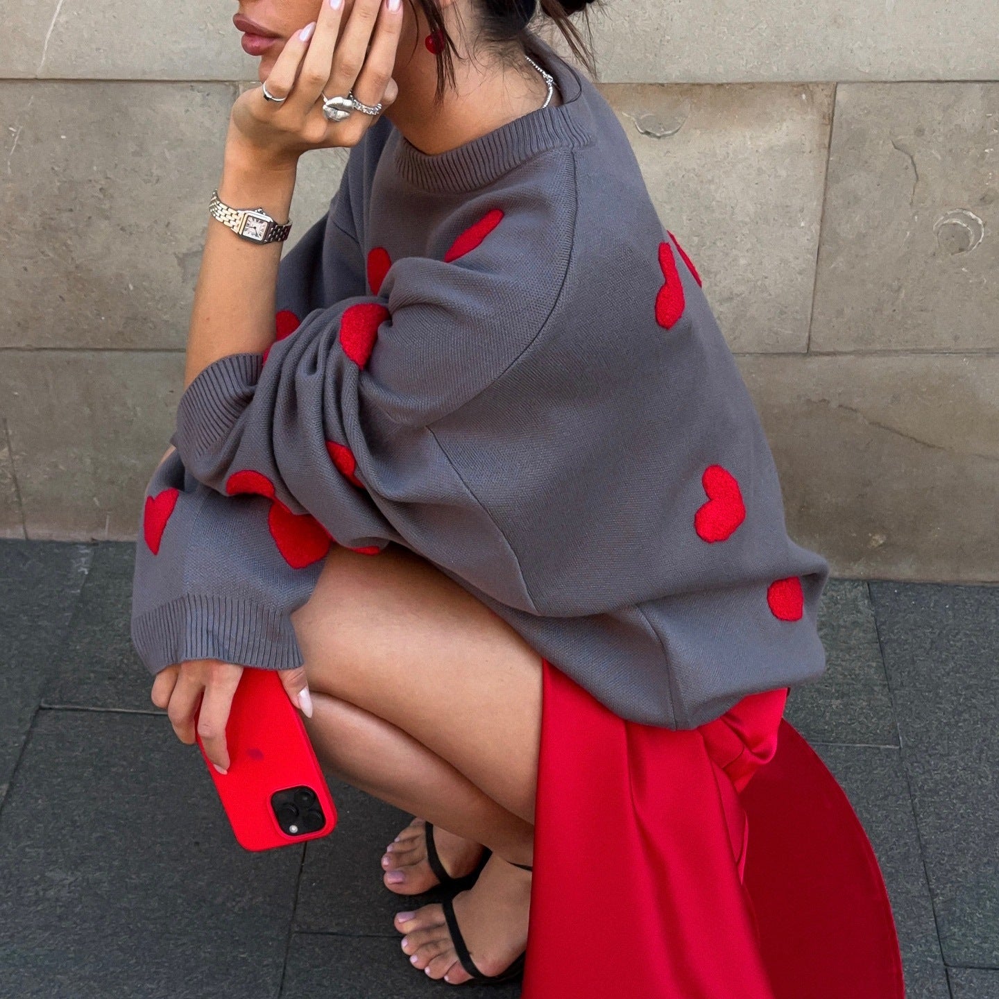 Discover our unique women's sweater with heart appliqués and a relaxed fit from NOVAE. This fashionable sweater combines comfort and style, ideal for casual occasions or relaxed days.