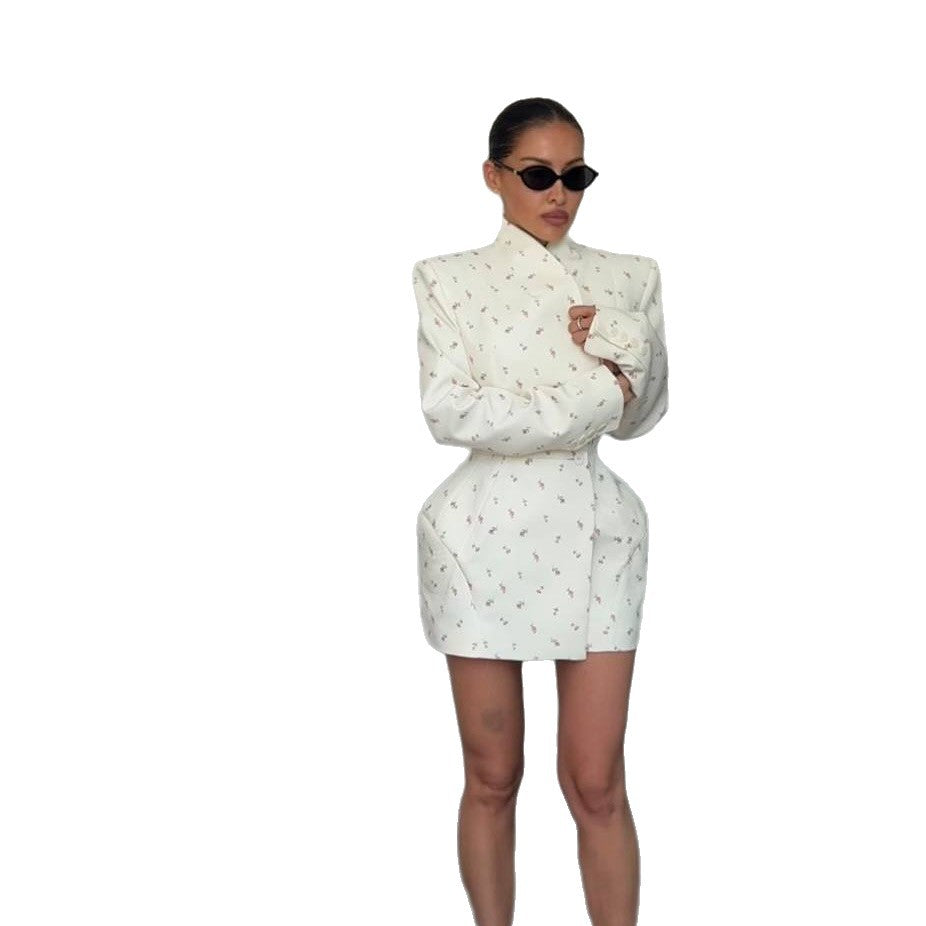 Women's Fashionable Blazer Skirt with Floral Design and Tailored Fit NOVAE