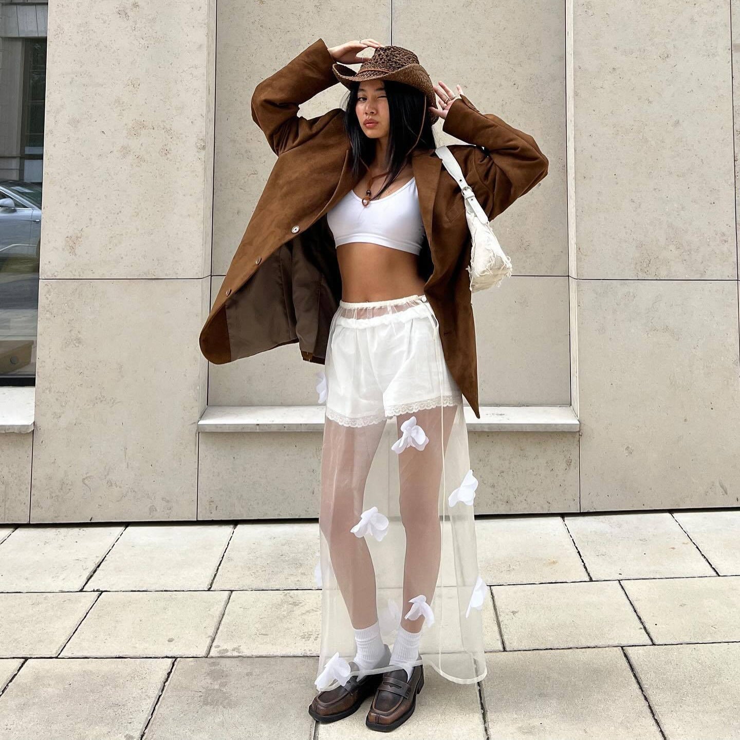 Add a unique and stylish touch to your outfit with this elegant transparent skirt from NOVAE!